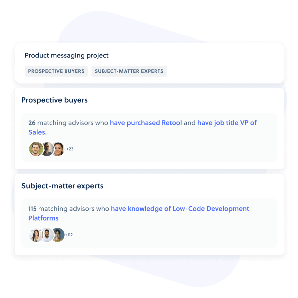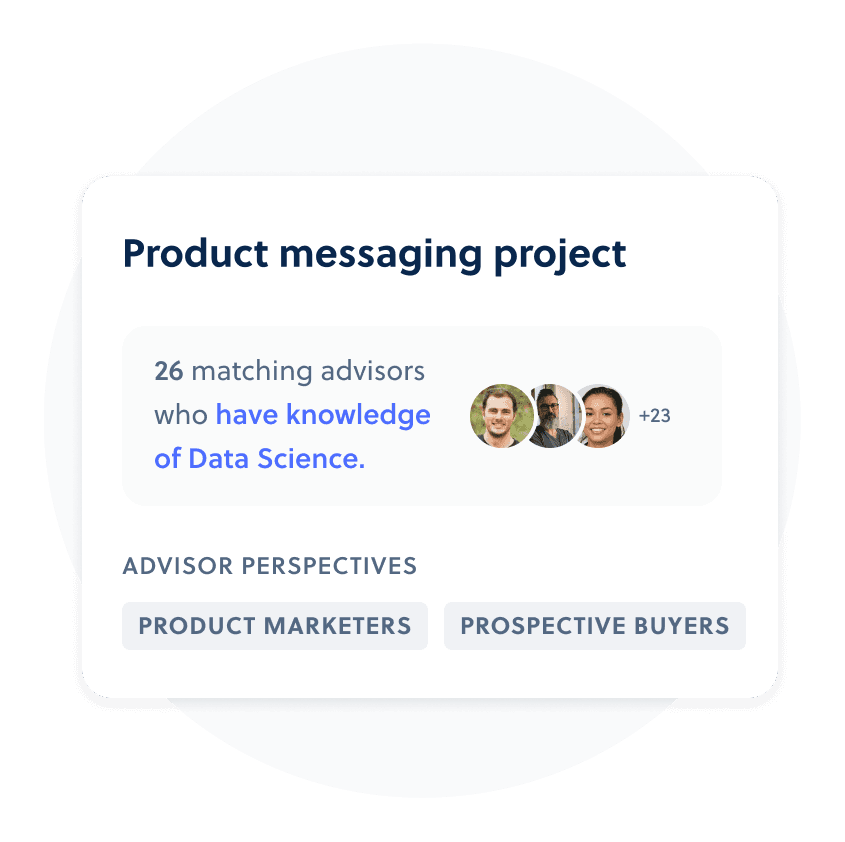 Connect with your ideal customer personas, buyers, and other expert advisors to accelerate product development and growth.
